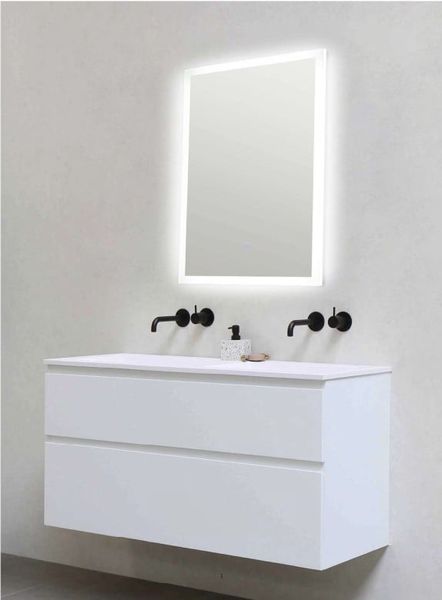 Gương chữ nhật có đèn tích hợp và tấm sưởi chống mờ GBK031V đổi màu ánh sáng LED